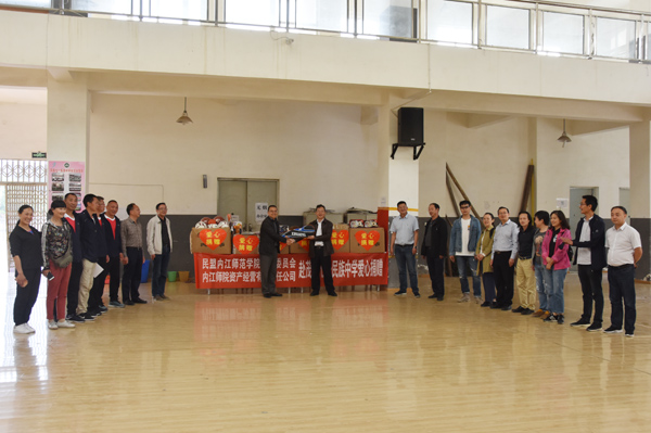 在七一民族中学调研期间,张大千美术学院就该校运动场舞台墙体彩绘进行了专题调研,并对彩绘设计、元素布局等进行了专业指导。资产经营有限责任公司、民盟内江师范学院基层委员会向七一民族中学捐赠了价值7300余元的体育器材,并举行了留守儿童关爱之“卫生健康教育”专题讲座。