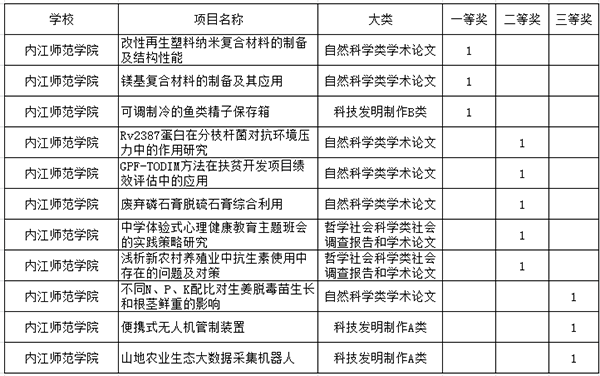 6月10日至11日,第十五届“挑战杯”四川省大学生课外学术科技作品竞赛终审决赛在四川大学锦江学院举行,我校共11件作品获奖,其中一等奖3项、二等奖5项、三等奖3项,实现了我校在该项赛事成绩的历史性突破。