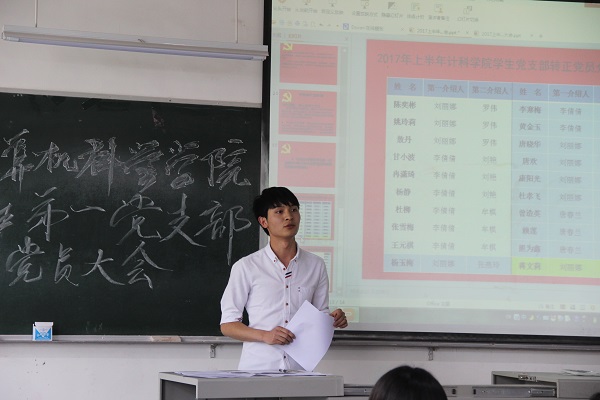 为推进计算机科学学院党建工作顺利开展,2017年5月13日下午,我院各学生党支部分别在一教407和三教106召开了2017年上半年党员大会。计算机科学学院学生第一党支部书记李倩倩、学生第二党支部书记吴昊、学生第三党支部书记刘丽娜主持了本次大会,大会讨论了我院2017年上半年党员发展和转正的问题。