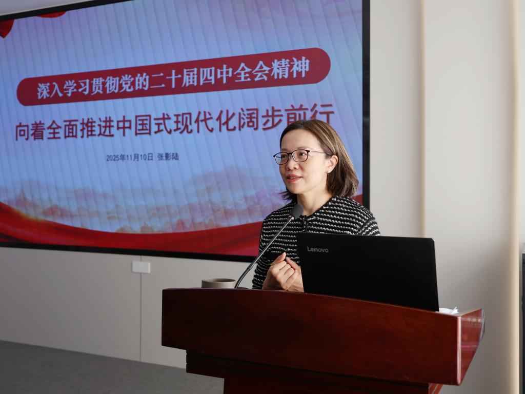 张影陆指导讲话。她表示,此次中心组学习理论与实际相结合,有效促进了班子成员对学院发展的深度思考。她希望学院党委把学习贯彻党的二十届四中全会精神作为当前和今后一个时期的首要政治任务,进一步凝聚共识,将学习成果转化为促进学院高质量发展的实际行动。