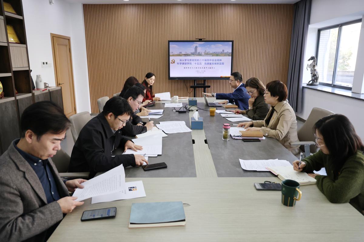 学院院长付少海领学党的二十届四中全会公报和“十五五”规划建议,并从学院发展机遇和面临挑战出发,提出下一步发展目标和任务举措。学院副院长马丕波、刘庆生、张丽平及其他党委委员分别结合分管工作进行了交流发言。