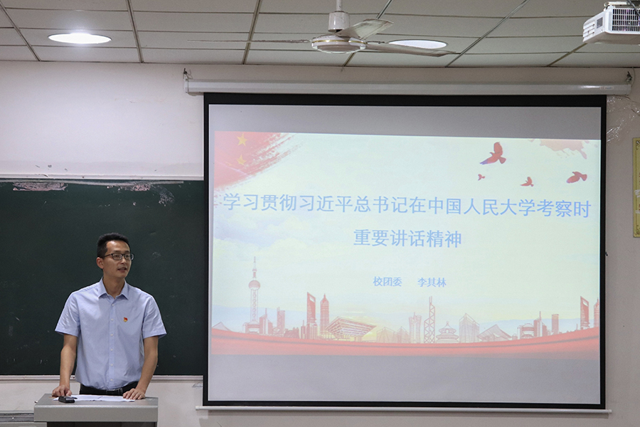 “我们是五月的花海,用青春拥抱时代……”激昂的团歌声后,李其林结合习近平总书记在中国人民大学考察时的重要讲话精神,作开班第一讲,他指出,五四青年节前夕,习近平总书记考察中国人民大学并同师生代表亲切座谈,对当代青年提出殷切期望和明确要求,充分体现了习近平总书记对青年和青年工作一以贯之的关心重视,对于做好新时代党的青年工作具有重要意义。他以习近平总书记考察人民大学时的五个场景为线索,结合世情、国情、党情、校情,传达了习近平总书记考察人民大学重要讲话精神。他强调,全体培训班学员要切实增强政治意识,把学习宣传贯彻习近平总书记重要讲话精神作为重大政治任务,感悟思想伟力,凝聚奋进力量;要牢记总书记的殷殷嘱托,坚定不移听党话、跟党走,努力成长为堪当民族复兴大任的时代新人,在青春的赛道上奋力奔跑,争取跑出当代青年的最好成绩!
