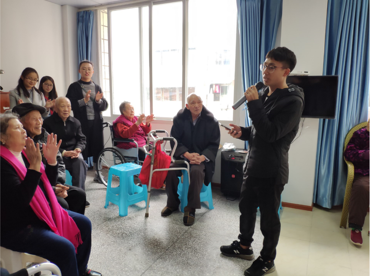 活动开始,志愿者们分别到房间问候老人,一对一帮老人剪指甲,与老人拉家常故事,分享最近热点时事,让老人们能够感知外面世界的精彩,让他们的心灵感受到关心与温暖。随后,志愿者们便开始为老人表演唱歌跳舞等娱乐节目,播放一些老人们熟悉的红歌,和老人们一起唱红歌,现场气氛十分活跃,老人们的脸上露出欢喜的笑容。紧接着,志愿者们为老人送上带来的慰问品,帮老人按摩,并询问老人的健康状况,让老人们感受到文院学子带来的友善与关切。活动结束,志愿者们与老人拍照留念,希望给老人留下美好的回忆。
