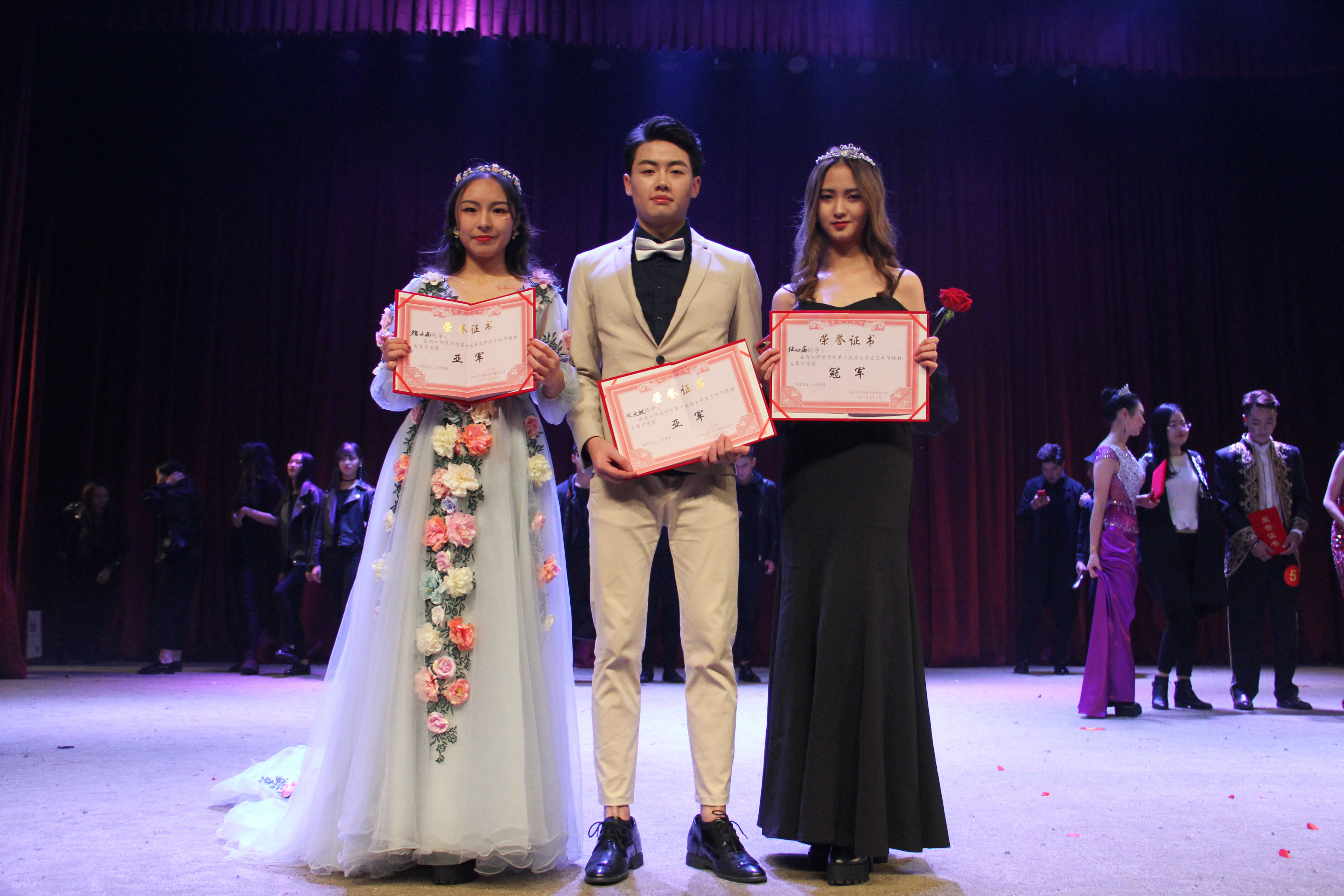 11月27日,内江师范学院第十五届大学生艺术展演活动模特大赛于晚上七点在我校东区礼堂开展。我院学生张心雨,徐小雨分别荣获本次模特大赛女子组冠、亚军,文大权获男子组亚军,我院以优异成绩夺下本次模特大赛桂冠。