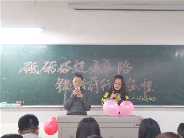 为进一步增强学生对中华民族伟大复兴的信心,展示当代大学生朝气蓬勃、昂扬向上的精神风貌,各班紧扣“小视角反应大变化,小切口呈现大主题”的要求,积极准备班会节目,在同学们的精心准备下。本次主题班会内容充实,形式多样且同学参与广泛。其中三班以振奋人心的歌声唱响青春的旋律、五班以激情昂扬的诗歌朗诵歌颂年轻的梦想。为达到激励效果,部分同学更是结合自己的实际讲述了各自的梦想和目标。最后的趣味抢答环节中,更是让同学们在游戏中领略了十九大的精神。截至13点,各班班会圆满结束。