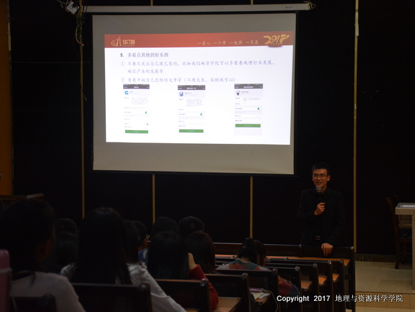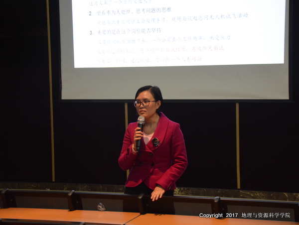 接下来,刘金梁老师从创业就业的角度对人文地理与城乡规划这个专业进行了解读,增强了同学们对本专业的再认识。她希望同学们能树立目标,积极进取,不断发掘专业的特点和精髓,努力拓展专业技能,做到“人无我有,人有我精”。
