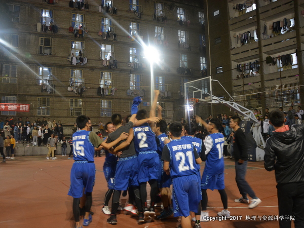 11月6日晚上8点,万众瞩目的男篮决赛点燃了地资学院每一个同学心中的焰火!灯光球场人山人海,观众们激情澎湃。比赛开始,我院便顺利夺得两个进球,队员们配合默契、攻防兼顾。经管学院球员奋起直追,两队比分一直处于你追我赶的状态,第三节我院略微领先。第四节我院比分被反超,队员们略显疲惫,默契程度也有所下降,大家的心都揪到了一起,可谓惊心动魄!观众们奋力加油助威,场上队员们也及时调整情绪稳扎稳打。最后两分钟,我院男篮7号队员投球得分,终于追回比分,最终我院以一分优势险胜,夺得冠军之位,创造了新的辉煌!