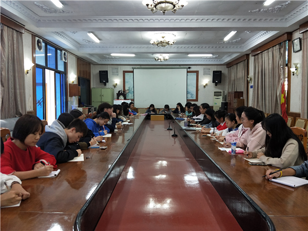 11月8日中午12:30,我院在中心会议室召开学生干部学习会议。党总支副书记李仰锐、团总支书记曾乾辉、团总支学生会主席团全体成员及各部门部长副部长参加了此次会议。