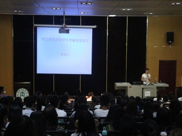 9月18日上午8:00,在第二学术报告厅,由分管教学的副院长谢碧文教授给大一新生上入学第一课——学籍管理。谢院长首先对大一新生的到来表示了热烈的欢迎,随即给大家介绍了关于学校和学院的一些规章制度,以及关于选课管理,学分管理等大学“基础常识”,使得新生了解了学校的各项规定。最后谢院长着重给大家强调了学分、素质、量化、考试等必要知识,同学们对此也非常感兴趣,大家都提出了自己心中的疑惑,希望自己在未来的大学生活中能遵守各项制度,优秀地完成学业。