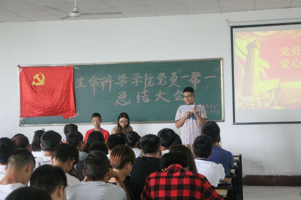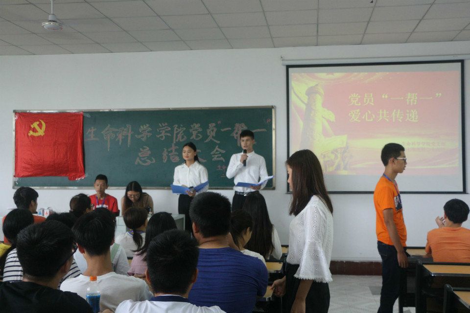 在雄壮的国歌声中,本次党员“一帮一”总结大会宣告正式开始,帮扶代表邹宇能同志发言,她简要讲述了这一个月帮扶活动中帮扶人员们的成果:提醒新生们拒绝网贷,帮助新生们更快融入生命科学学院这个大家庭,还向新生介绍了党的光辉历史和入党的相关流程和注意事项,并希望新生们积极向党组织靠拢。帮扶代表的发言体现了帮扶人员和帮扶对象之间深深的情谊。随后,新生代表高伟同志发表感言,更是表达了新生们对于师兄师姐们的感激之情。同时我院学生党支部也为这份情谊献上了一份记录着活动期间各帮扶人员与新生们难忘瞬间的动感影集。大会过程中,党支部成员们不仅对此次活动进行了总结,还与帮扶人员和寝室代表们一起完成了“你画我猜,知识竞赛”等有意义的活动,这些活动的举行不仅促进了新同学们之间的团结,也代表着党支部成员和帮扶人员们对新同学们的热烈欢迎。不仅如此,彝族少年罗斌一首《山那边的痛》更是为此次总结大会添上了绚丽的一笔。活动的最后,学生党支部书记助理严家驹同志进行了简短的总结点评。全体成员合唱《国际歌》为此次活动划上了圆满的句号。