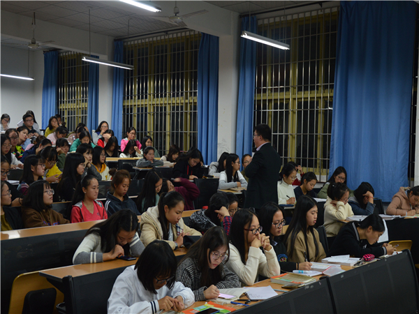 黄老师首先就考研的目的和考研的意义展开讨论,并鼓励同学们要志存高远,努力学习。接着通过分析当前的就业率和我校考研的成功率,为同学们具体讲解了考研形势,并就如何选择校选择专业,如何准备研究生各阶段考试,如何安排学习时间等问题提出了宝贵的建议。最后,黄老师根据自身多年的宝贵经验,向新生细心讲解他的考研策略,为其解读了“考研”二字的含义,讲解了考研的学习重点,理清了考研的动机。