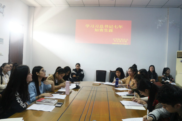 会议伊始,陈怡君老师首先与大家分享了她阅读《习近平的七年知青岁月》后的体会。她从书中概诉了当代大学生应当如何从实际生活中学习贯彻习总书记七年知青的精神。并从中总结到,作为一名大学生,我们应当做到有追求、能吃苦、爱学习、敢担当,从自身实际出发,做好当职工作。随后由学生党员自由发言,来自15级2班的张玉萍同学对习总书记在知青岁月中坚持阅读学习、与陕北农民同吃同住等行为表达了高度的敬佩。并表示日后在日常生活中也要学习习总书记坚持学习,深入了解群众的精神。