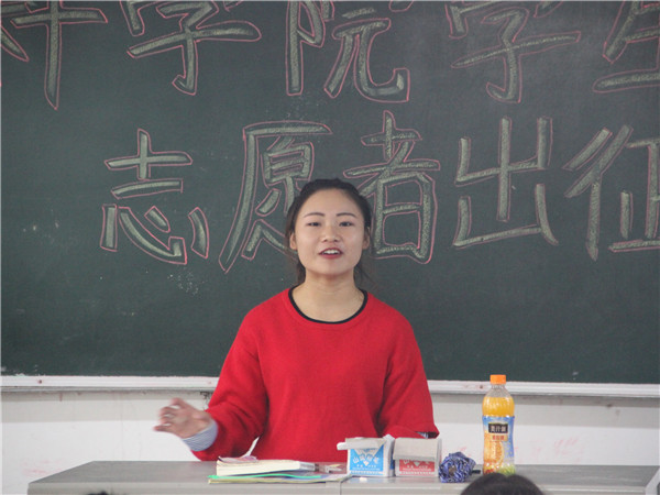 12时30分,主持人宣布仪式正式开始。首先志愿者代表苗珂分享她在志愿活动中的经历与感受,讲述了她和的小朋友之间温馨的小故事。紧接着全体志愿者在主席高爱玉的带领下进行宣誓仪式,整个现场正式且严肃,能感受到每一个志愿者对于这份志愿服务工作的重视。宣誓完毕后实践部成员便进行了授证仪式,实践部部长张艳红在发言中提到了‘志愿者的标志’,她说:“志愿者的标志为一双手捧着一颗心,而这颗心是一点一点的爱汇集起来的,希望每一位志愿者将爱凝聚起来,帮助他人,将爱传递下去。”最后由高爱玉师姐对此次出征仪式作总结发言,她希望我们的志愿者像红军长征一样坚持下去,在这漫漫长征的征途上,不忘初心,方得始终。