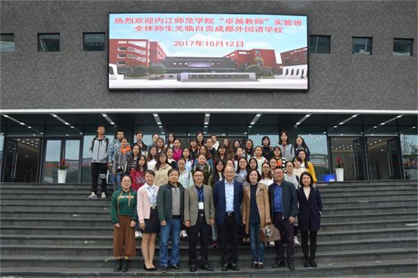 2017年10月12日,外国语学院我院16级“卓越教师”实验班全体在党总支副书记李仰锐、指导教师喻红教授、班主任熊紫薇带领下前往自贡成都外国语学校进行师范技能见习,并开展了深入的学习交流活动。
