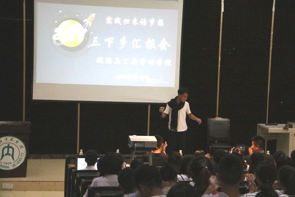2017年9月25日19点整,我院于第二学术报告大厅组织并开展暑期“三下乡”汇报大会。莅临本次汇报大会的嘉宾有我院党总支书记谭化容、辅导员邱政、孟发兵。同时,校团委组织部、实践部、宣传部和各二级学院实践部代表及2017级各班新生也参加了本次汇报大会。
