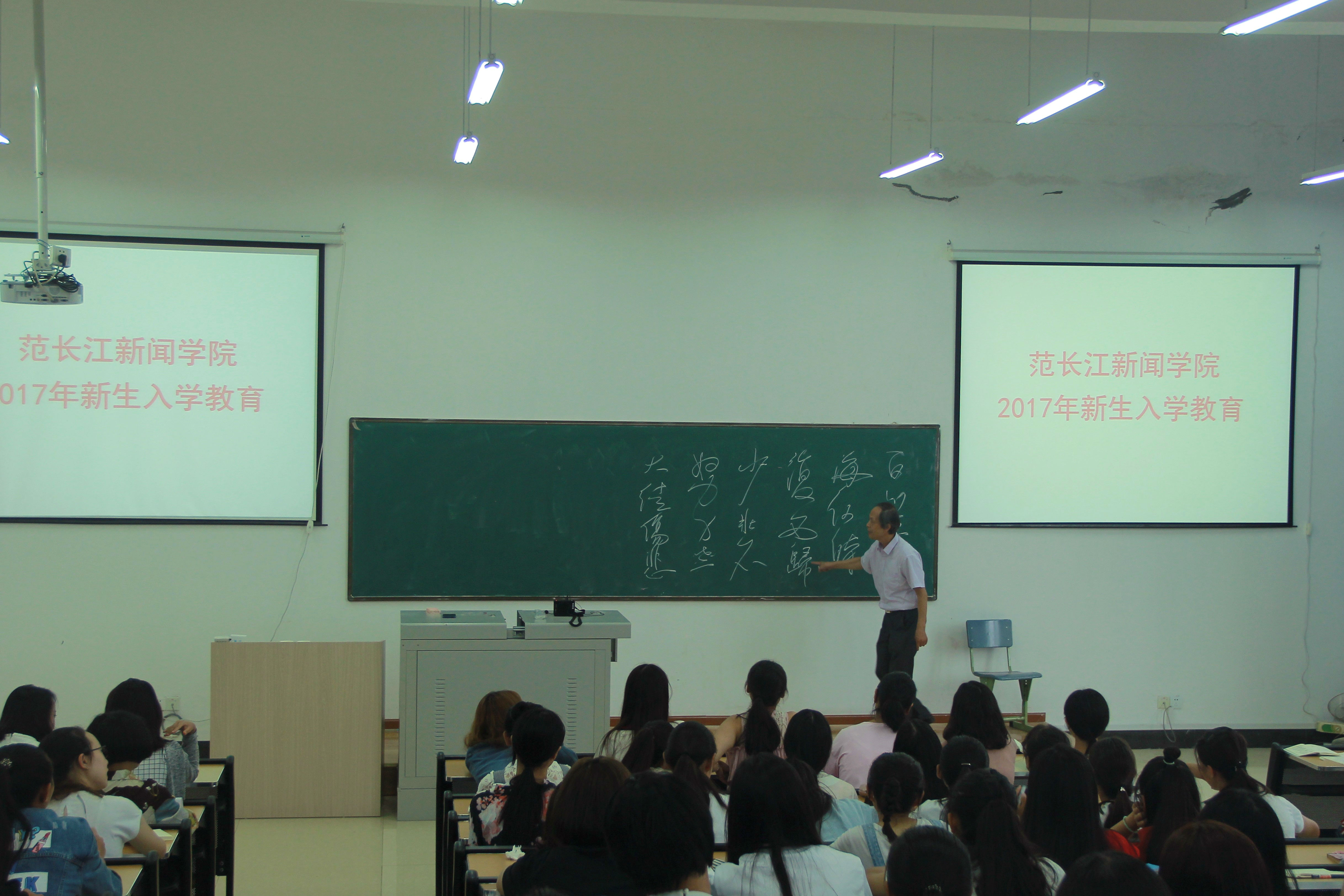 本次讲座在轻松的氛围中结束。王院长挥笔写下“百川东到海,何时复西归?少壮不努力,老大徒伤悲”以此来劝诫同学们要珍惜光阴,对新生提出了殷切的期望。此次讲座,让新生们有了明确的蓝图,为今后同学们的学习生活奠定了扎实的基础。