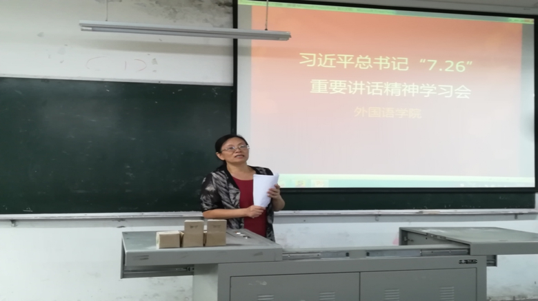 为进一步学习贯彻落实习近平总书记“7.26”重要讲话精神,迎接党的十九大的胜利召开,9月18日14:30,外国语学院工会在一教111教室成功举办了学习会,会议由工会主席唐德斌主持。