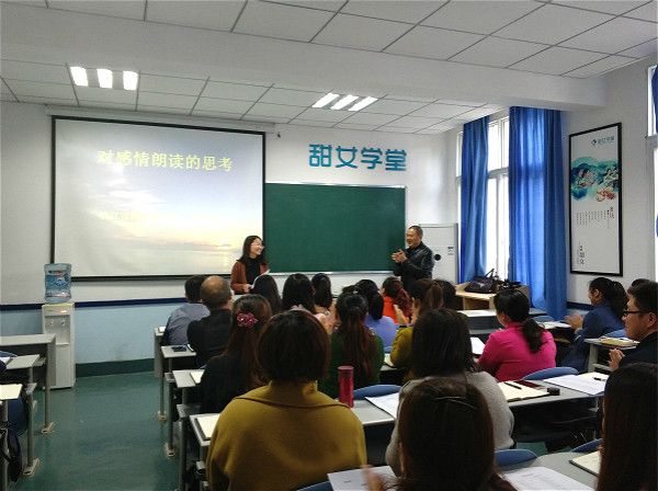 随后,王中华老师就“感情朗读,情从何来”这一重点做出讲解。王中华老师表示:有感朗读需要理解、品味、感悟、联系生活,要培养学生的语感,让学生能够把握文章的感情基调和技巧。王中华老师还通过对《桂林山水》、《再别康桥》的讲解使学员对有感朗读有了更加深入的了解。