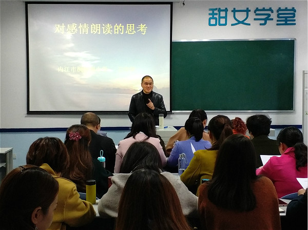 2017年11月11日上午8点30分,内江市桐梓坝小学校长、特级教师王中华以“对感情朗读的思考”为题在2教103教室进行专题讲座,本次讲座由我院梁明玉老师主持。
