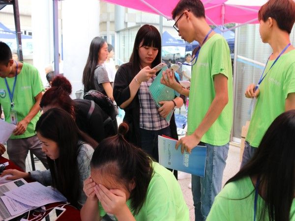 迎新工作在凉爽的天气中有条不紊地进行着,大家各司其职,进展很是顺利。