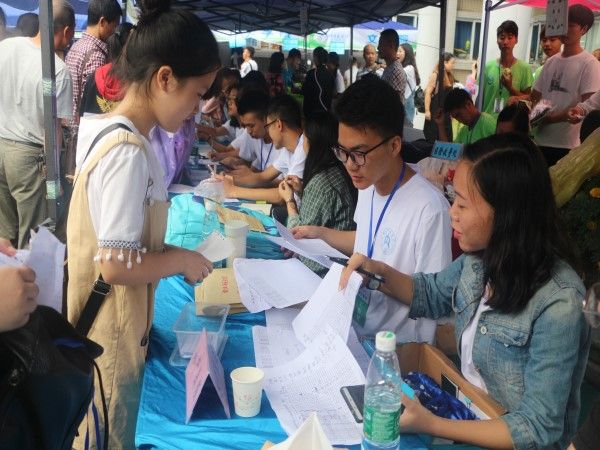 每一位新生,都有热情的师兄师姐们给他们拎行李,带领他们办理手续;为了让新生们能够更快的熟悉校园,热心的师兄师姐给新生讲解学校的基本分布情况,带领新生到附近的街道游览。在新生入住寝室时,细心的师兄、师姐们还为他们铺床、挂蚊帐,只为让来自异乡的新同学不再感到彷徨。