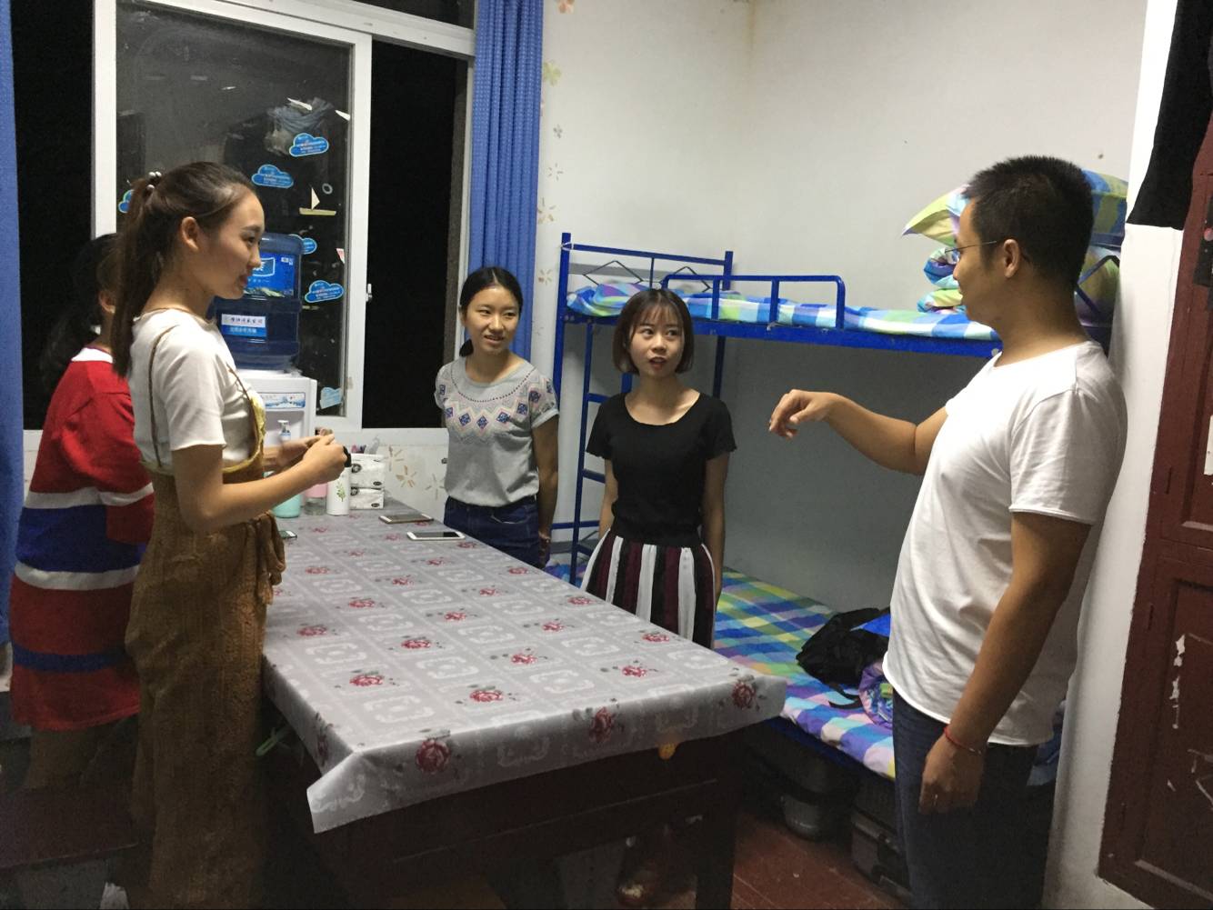 为了解新生情况,让新生更快地融入大学生活,9月2日19点20分,教科学院院长陈理宣,副院长杜高明,党总支副书记邓川分别带队走访了新生宿舍,向17级新生送去了关怀和问候。辅导员姚鑫、苟远萍、杨倩、杨林、17级各班班助及团总支学生会部分学生干部陪同走访。