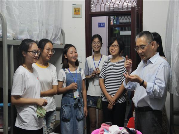 走进一间间新生寝室,教科学院领导亲切地同新生交谈,向同学们介绍了学院的相关情况;详细询问了新生来源地、初入学校地感受以及对本专业地理解和看法。还告诫新生要精于学业,不仅要读书,还不忘看书,从生活中历练自己,在学习中充实自己。最后还不忘提醒新生关注人身、财产安全问题,并告知新生遇事不要轻信,不要麻木,三思而后行。