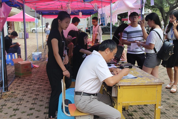 9月3日上午,迎新工作依旧继续,我院徐大军书记、院长刘益和、副院长李尧,辅导员吴昊、杨超老师以及志愿者们也早早的投身到迎新工作中。早上迎新开始没多久,计算机科学学院又迎来了一批青春激昂的莘莘学子,他们带着对大学生活的憧憬,加入了计算机科学学院这个大家庭。