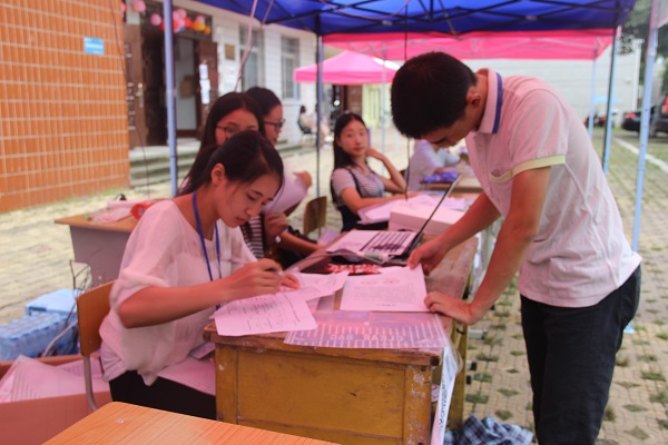 为了做好迎新工作,计算机科学学院组织成员组成了一个志愿者团队,在学院摆点的地方都有志愿者等待在哪里,随时欢迎着来自各地的师弟师妹们。他们帮助新生们完成注册,领取生活物品,以及入住宿舍等工作。志愿者们满腔热情,为了让新生尽快的熟悉新的环境,更快的融入学校的生活,志愿者们向新生们简单的介绍了学校的楼层分布,生活注意点,为他们将来的生活提出了自己切身的建议。来来回回的接送也并没有使志愿者们懈怠于自己的工作,他们热心的欢迎每一位新生的到来,帮家长学生们搬运行李,迎新工作如火如荼,到处都是忙碌的身影。计算机科学学院团总支学生会的师兄师姐们也不厌其烦的回答着新生、家长提出的各种问题。不少团总支学生会的师兄师姐主动帮着拎行李,一路谈笑风生。新生细声地叫着“师兄师姐”,老生们也开心地介绍这介绍那。