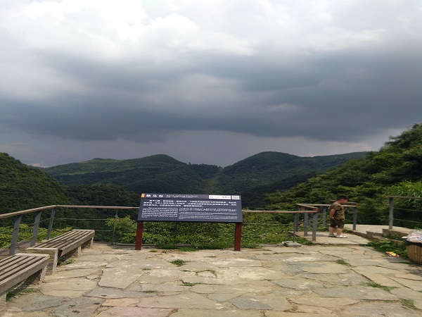 大概9点多快到10点的时候,我们开始登屯,因为我们在屯脚稍作休息,沾了沾河里的凉水,捡了一些可爱的石子作为纪念。此时行云流水,眼前崎岖蜿蜒的山路似乎都成了一种宁静的心境的衬托物。在这样看似大好的天气下,我们打着伞登上了海龙屯。果然第二次登时感觉轻松了许多,更容易驾驭这样的路程。但是天不如人愿,当我们已然仔细观察了地下的铜柱关和铁柱关以及飞虎关之后,正要登飞龙关时,忽然天际飘来了一大片乌云,起先我们没把它当回事,大概十分钟之后,开始打雷了,紧接着就是闪电,无奈,我们飞快下了山,准备回去。可是谁知雨只下了一小会儿就开始放晴了,而且太阳愈加灼人。我们被天公戏弄了一番,可此时时间已经不允许我们再一次登上去了,于是带着些许失望回了。