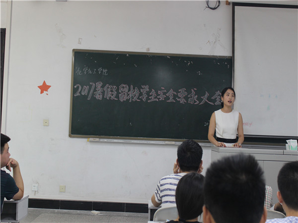 为做好2017年暑假留校学生管理工作,强化暑期留校学生安全意识,确保留校学生暑期的人生财产安全,化学化工学院于7月3日上午10:10在五教北101召开暑期留校学生安全要求大会,强调暑期留校期间的注意事项。出席本次会议的人员有:我院党总支副书记吴籽龙、辅导员陈陆老师以及全体暑期留校学生。