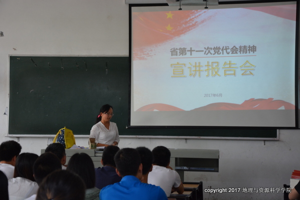 6月12日下午2点30分,我院13级到15级的学生党员在第一教学楼302参加“省第十一届党代会精神宣讲会”,由学生党支部书记罗利老师主持。宣讲在回忆入党征程的视频中开始,之后,罗利老师传达了此次省党代会的精神。