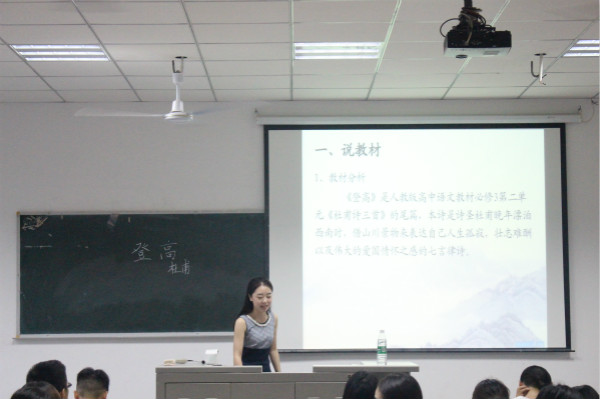 在比赛过程中,通过参赛选手的一言一行和所讲授的课程,可以看出她们经过了精心准备,也看得出初为人师的认真负责。其中,3号选手李施怡以课文《当你老了》为题,以音乐导入课程,采用合作探究、教师引导及诵读的方式引导学生完成教学内容。并对诗歌中的假设、照应、象征、意向等手法进行细致分析。接着,评委老师谭永燕与她交流了诗歌中的感情基调。其他几位选手表现也十分出色,赢得了现场观众的阵阵掌声。通过同学们的一言一行和所讲授的课程可以看出,他们是经过了精心准备,也看的出初为人师的认真负责,