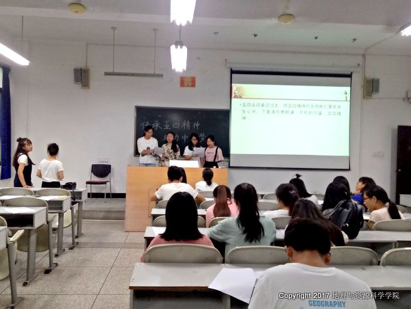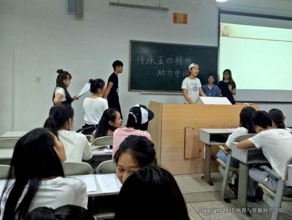放眼数千年的中国史,五四时期是一个文人密集的时期,是具有先进意识的中国青年寻找救国救民的道路的时期。在当今社会我们一提到五四,想到的不仅仅是爱国,而是多方面的进行思考。为加强对我支部成员的爱国主义教育,激发同学们的爱国热情,缅怀千千万万为新中国成立献身的革命先烈,在团员青年中弘扬以爱国主义为核心的伟大民族精神,2017年5月我地理与资源科学学院各团支部开展“传五四薪火,展青年风采”为主题的团组织生活会。