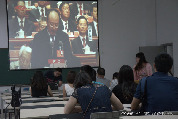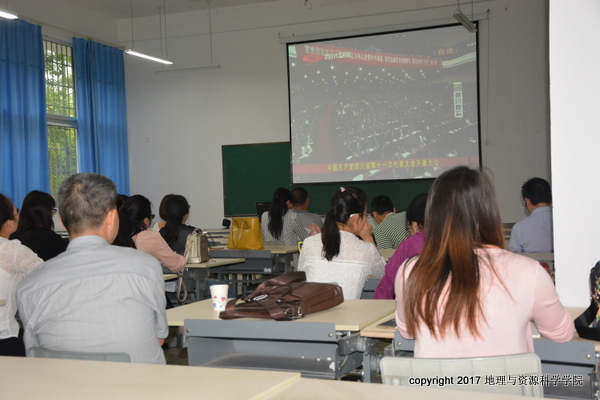 5月24号9点我院党员在新实验楼105集体收看中国共产党四川第一次代表大会开幕式直播。参加此次活动的有党委副书记龚彬、副院长胡晓东、辅导员罗利老师及全系党员老师、党员学生。