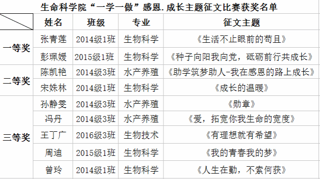 结合“学习总书记讲话 做合格共青团员”教育实践和“第二届全国大学生网络文化节”的相关通知要求,为引导广大同学增强感恩和诚信意识,不断励志成长,我院特举办“一学一做”感恩成长主题征文比赛。