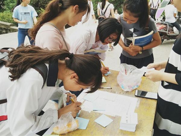 2017年5月24、25日,教科学院月岩四心理辅导队于山顶球场、游泳池设立了两个宣传点,旨在为即将迈入高三的内江一中同学收集来自“师院”的祝福以及鼓励。