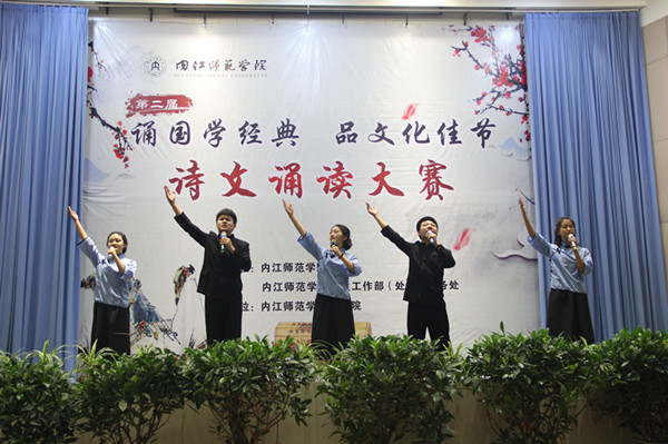 本着继承与发扬经典诗文的原则,内江师范学院语委举办了以“颂国学经典,品文化佳节”为主题的第二届诗文朗诵大赛,并于5月22日晚上7时在一报举行。党委学工部部长郭云东老师、教务处副处长胡玲老师等出席此次比赛。比赛选手分为专业组和非专业组,专业组由文学院和范长江新闻学院组成,非专业组由建筑工程学院等14个二级学院组成。