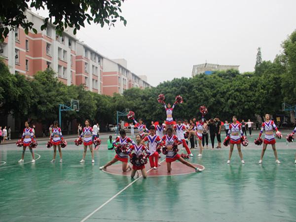 2017年5月18日9点40分,教科学院党总支副书记邓川与学工办老师苟远萍、姚鑫、杨倩,以及教科学院团总支学生会代表前往东区篮球场慰问健美操大赛参与队员。