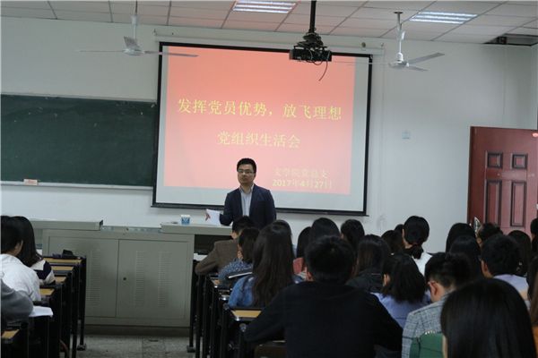 4月27日中午12点40分,文学院学生党支部党组织生活会在中文楼203教室举行。参与本次会议的是来自大三大四的正式党员与预备党员。生活会以“发挥党员优势,放飞理想”为主题,将目前的就业现状与“两学一做”相结合,引领党员们在找工作的过程中发挥党员的模范带头作用。本次会议由辅导员许小涛老师主持。