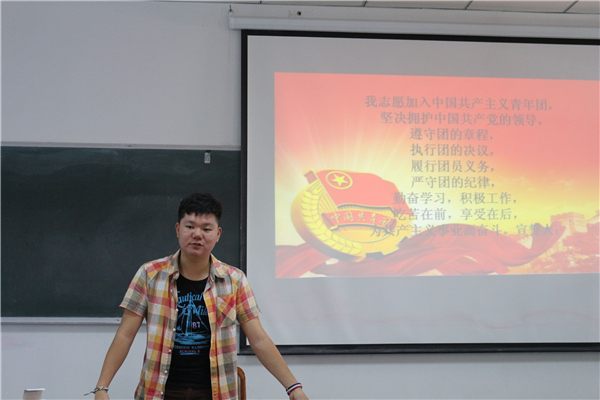 组织部王钰萍同学带领全体团员们进行团员宣誓。宣誓完毕,组织部部长阮伟作活动总结,他提出作为一名共青团员应该在日常工作学习中创先争优、在急难险重任务中勇于担当。要有学习先进、争当先进的意识,发挥团员先锋岗、团员示范岗等的引领作用。
