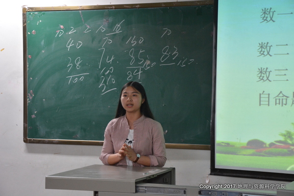 交流会伊始,主持人韦浩亮同学简单介绍了考研的重要性。交流会上,考取中山大学GIS专业的何桂林同学就考研相关的国家政策做了详细介绍;此外,考取西南大学GIS专业的朱文东、西南大学自然地理专业的罗丹、东北师范大学自然地理专业的李艳梅、重庆师范大学人文地理专业的陈亭旭等同学依次就考研学校的选择、日常复习备考时间安排、应试技巧以及应试心理,结合自身的亲身经历向大家做了详细说明。