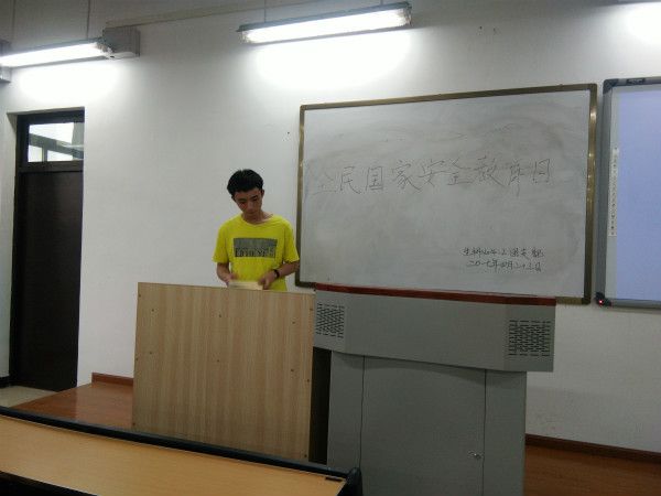 2014级1班于4月23日晚开展了题为“维护国家安全 守护家庭幸福”的班会活动,班会伊始,主持人介绍了《国家安全法》法律条文、《国家安全法5大亮点解读》等相关资料,并播放国家安全教育视频动画、部分警示教育案例视频。然后通过视频形象的向同学们讲述了校园周边存在的一些安全隐患和校园安全常识。紧接着就以有奖问答的形式抽问,并且让有准备的同学进行演讲关于习近平总书记系列重要讲话。