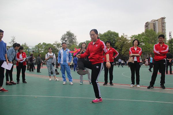 与此同时,踢毽子比赛也一同展开,每人有两次机会,记入最高成绩。在裁判宣布比赛开始后,我院辅导员范佳佳老师首当其冲,只见毽子在她脚下飞舞、旋转。徐春霞老师动作娴熟,脚轻轻一抬,毽子便服帖地随她上下摆动。现场加油声、喝彩声不绝于耳,十分热闹。通过本次踢毽子比赛,大家不仅愉悦了身心、锻炼了身体,也增强了教职工之间团结合作精神。