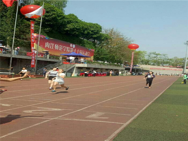 4月19日上午8点,内江师范学院第十七届运动会在西区田径场隆重开幕。在甲组100米赛事结束后,上午9点35分,乙组男子100米拉开序幕,我院有唐陈、王佳忍和张文诒三位同学参加了比赛,虽然他们三位都无缘决赛,但他们在一声枪响后的那股冲劲赢得了在场观众的阵阵喝彩声!他们在场上的精彩表现很好地诠释了我院的精神。男子100米结束后,上午9点53分,乙组女子100米预赛开始了,我院有张雨柔、赵小钦、郑娱洁三位同学参加了比赛,待裁判发令后,奋力冲向终点,虽然未能进入决赛,但她们已经做得很好了。拼尽全力,无悔于赛道,无怨于自己!