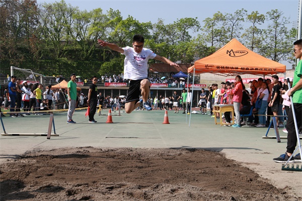 经过一个月的艰苦训练,我院的运动健儿们早已跃跃欲试。在男子三级跳的赛场上,我院运动员身姿矫健:起步,冲刺,一步,两步,再纵身一跃,稳稳落地。最终我院16级3班王磊以12.04米的佳绩斩获第二名,15级3班刘湘江同时取得了第四名的好成绩。