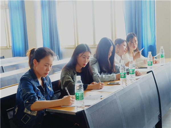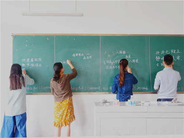 14日12点,参加粉笔字比赛的同学陆续来到教室,此次粉笔字比赛荣幸邀请到美术系优秀学生代表担任评委。比赛时,台上的同学专心致志,以最好的状态写出最拿手的字体。台下等待比赛的同学神情紧张,在观察其他选手的同时也不断地用手在桌子上比划练习。一支小小的粉笔在参赛者们的手下化作一个个刚劲有力的汉字跃然于黑板。台下的评委仔细观察,通过查看字体是否有笔锋、是否整洁、干净利落来评判打分。