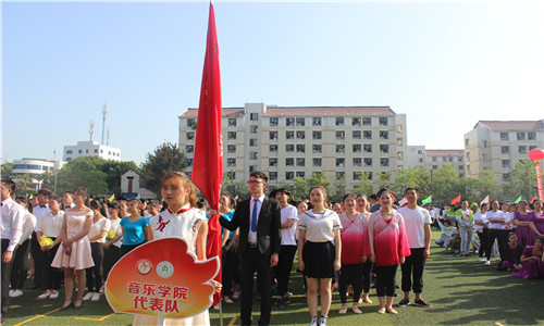 迎着初夏早晨明媚的阳光,伴随着激昂奋进的《运动员进行曲》的节奏,运动会在各个学院的入场式中拉开序幕,各学院代表队和裁判队依次从主席台前经过。其中音乐学院方阵运动员身着整齐的服装,喊着响亮的口号,迈着坚实的步伐,再加上代表音乐学院特色的舞蹈动作,将我院学生的青春与活力体现的淋漓尽致。接着运动会的各项赛事依次展开,在比赛中,音乐学院健儿在跑道上拼尽全力,冲刺重点;在接力中传递默契,为集体的荣誉而拼搏……我们将在接下来的比赛中持续关注我院同学的表现。