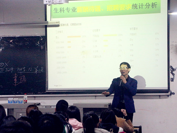 本次讲座我院请来了启航的杨庆利老师为大家解疑答惑,一开始杨庆利老师就提出了“我们为什么要去考研?”“考什么?”“怎么考?”等问题,引导同学积极思考,紧接着杨庆利老师以“如何高薪就业为目标去考研?”为主题,为学生们分析如何科学、理性和有计划地规划考研。杨庆利博士将考研分为两个阶段,一是科学备考、二是精确报考。随后,杨老师为我们分析了生物专业能够考研的专业及院校,他强调,选择考研专业和院校时要做出冷静合理的分析后再进行选择。讲座的最后杨老师为同学们分析了“考研能带给我们什么?”并鼓励我们能考研的就一定要考,不能考研的创造机会也要考。