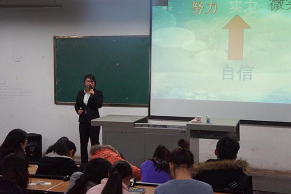 18点30分,我院的100名同学早已排着长队,等候入场。此次讲座由我院心理辅导站干事余杰主持,他首先通过PPT展示并讲解了“什么是自信?”、“如何树立自信?”。建立自信,首先要善于发现自己的长处,学会积极的自我暗示,要时常自我激励,积极乐观地与人相处。从点滴的进步开始,正视自己的缺点,勇敢面对失败,信任自己。